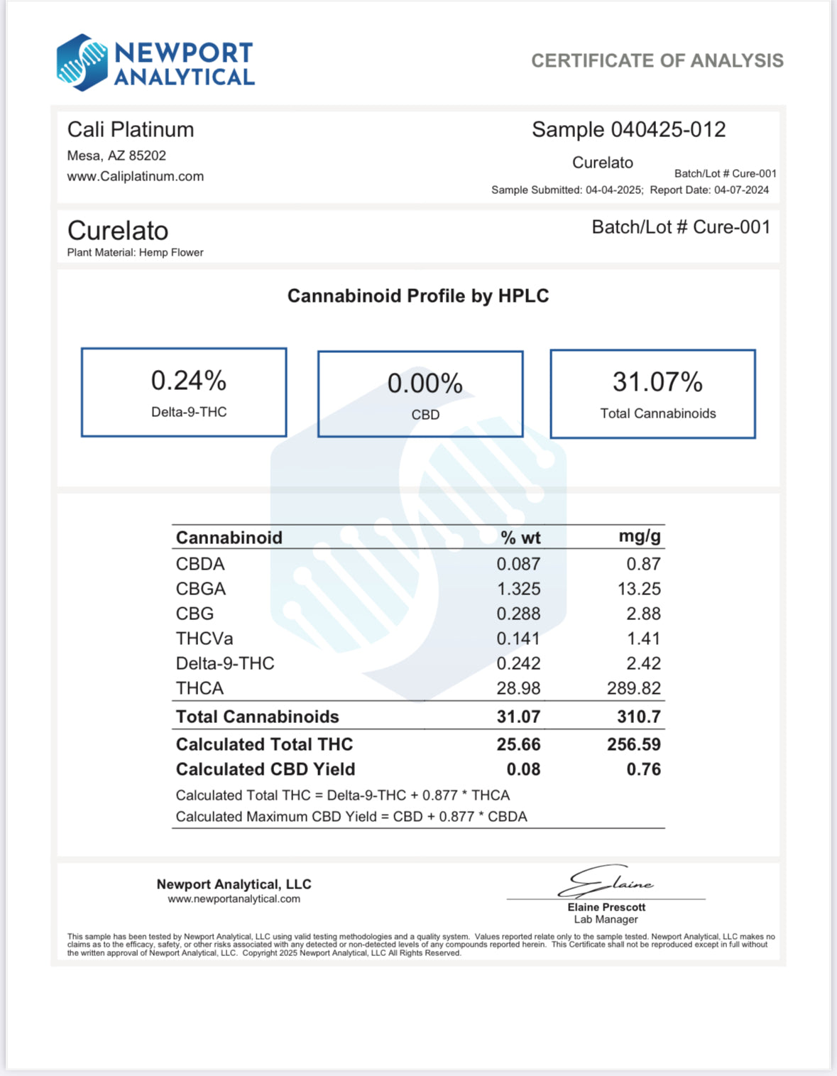 Curelato is a hybrid weed strain made from a genetic cross between Gelato 33and an unknown parent strain. This strain is 50% sativa and 50% indica. Curelato is 23.5% THC, making this strain an ideal choice for experienced cannabis consumers. This strain is a balanced hybrid with compact buds, staying true to its Cookie genetics. We are still learning about Curelato’s effects, flavors, and medical uses. If you've smoked, dabbed, or consumed Curelato, please tell us about your experience by leaving a strain review.